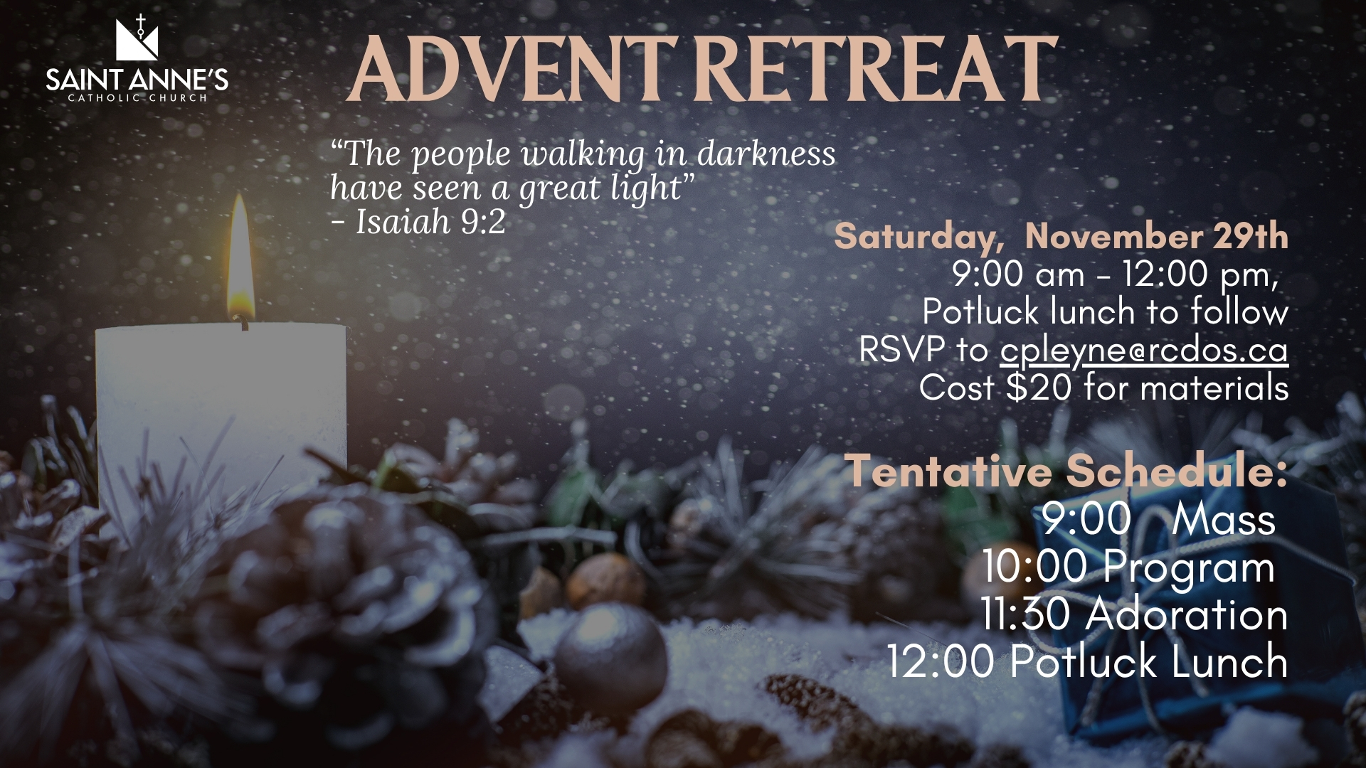Sign up to receive our weekly email “The Snapshot” to be kept up to date about things happening at our parish!